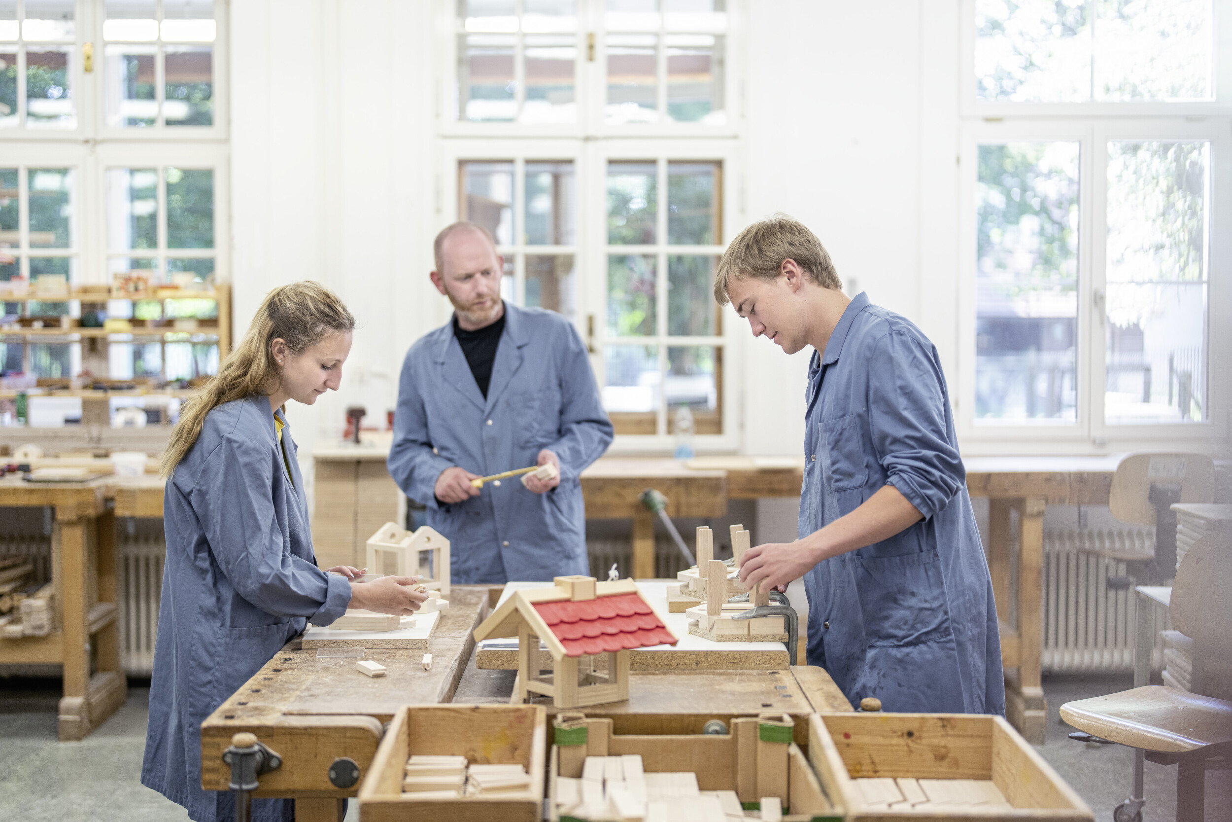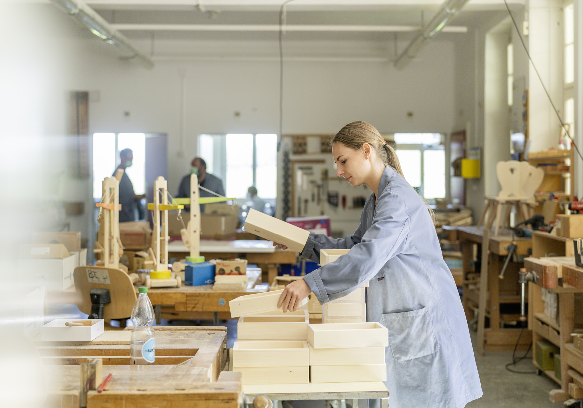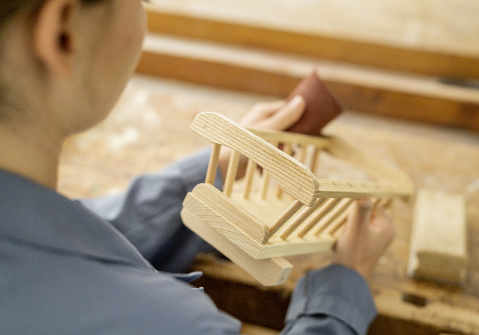 Wir verarbeiten einheimisches Holz zu Kinderspielsachen, Kindermöbeln und auch für verschiedene individuelle Kundenaufträge. Die Holzwerkstatt ist aufgeteilt in einen Maschinenraum, einen Bankraum und einen Lackierraum. Ein gutes Arbeitsklima sowie der Aufbau sozialer Kontakte, sinnstiftende Arbeiten und Freude an Produkten, bei welchen Sie an der Herstellung mitwirken, stehen bei uns im Fokus.